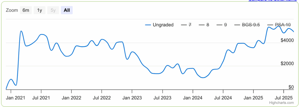 Further evidence of Pokémon TGC Pocket impacting the demand of physical cards can be seen with the price of the coveted 1st Edition Charizard card. The card’s price had a dramatic increase around the same time as the release of the mobile game, even surpassing its price during the pandemic.